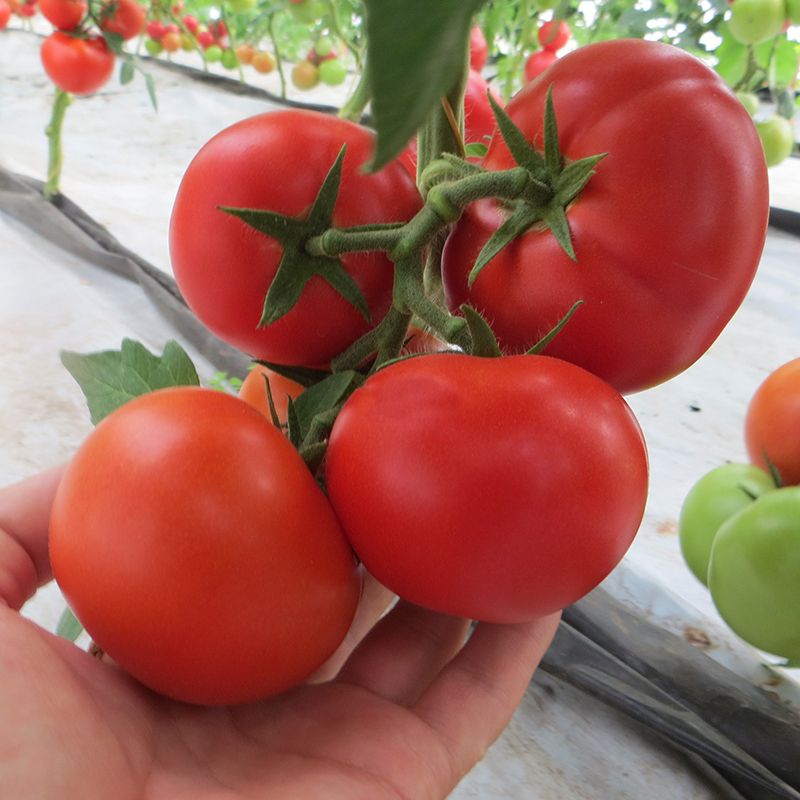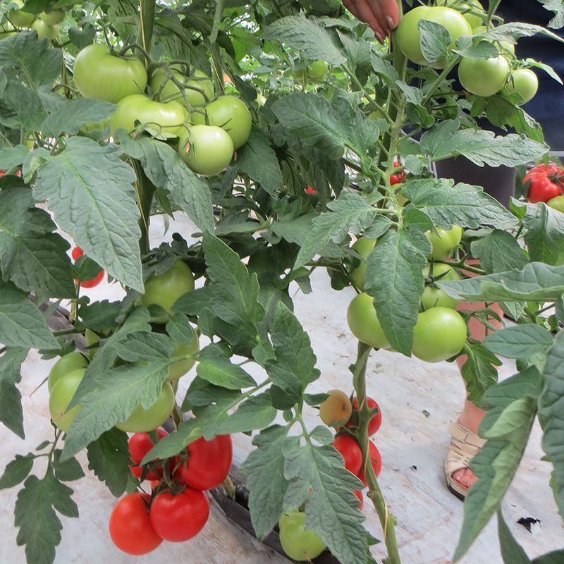 Характеристика плодов – Форма плодов округло-приплюснутая, плод однородный, не имеет белый стержень внутри и зеленого пятна. Толщина стенки достигает 7-8 мм, кисть содержит 4-5 плодов. Вес – 250 г.