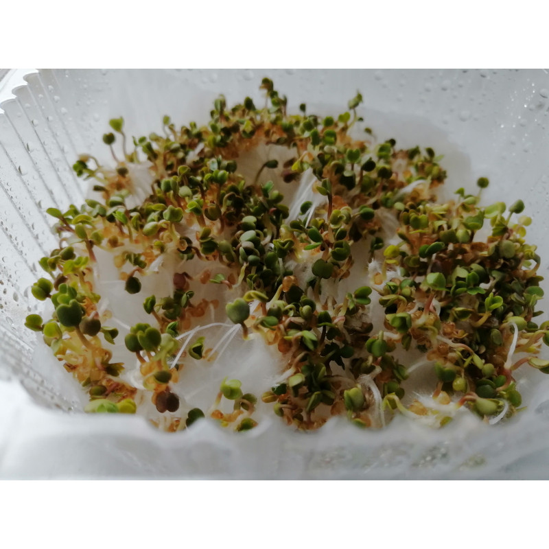 Очень нежные и небольшие листочки микрозелени рукколы имеют яркий аромат и ореховый, острый вкус.