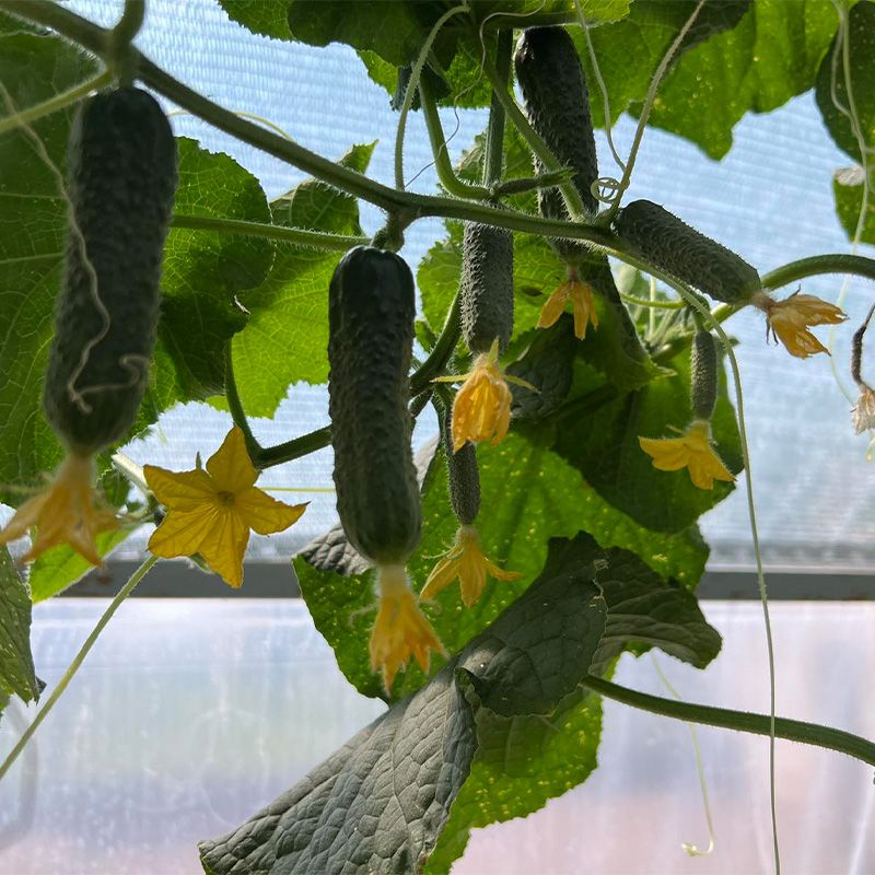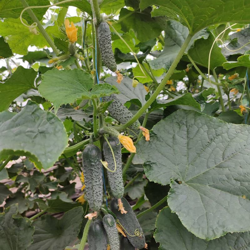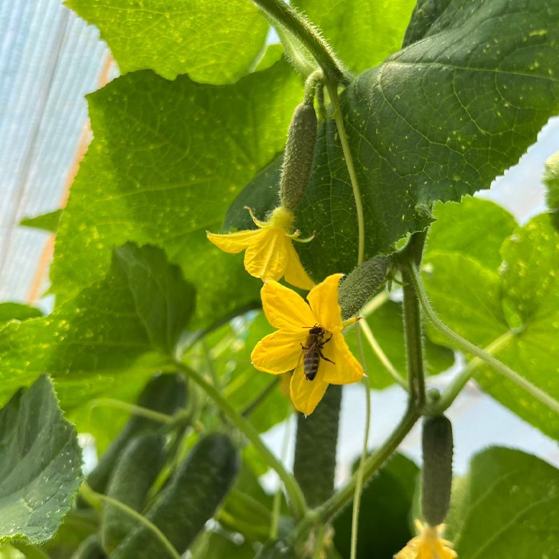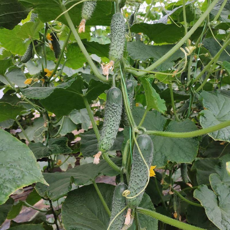 Особенности растения – Растения имеют прочную корневую систему, вегетативный тип, с сильными боковыми побегами. При высоте растения 2 м формирует 22-23 междоузлия, в одном узле не менее 2-5 плодов, есть и по 6-7, количество огурцов на растении 38-45 шт. на дату оценки. До этого было проведено 7 собраний.