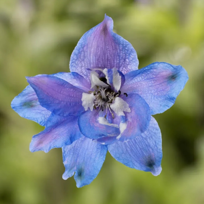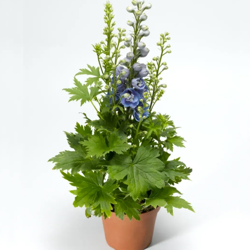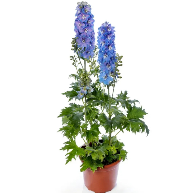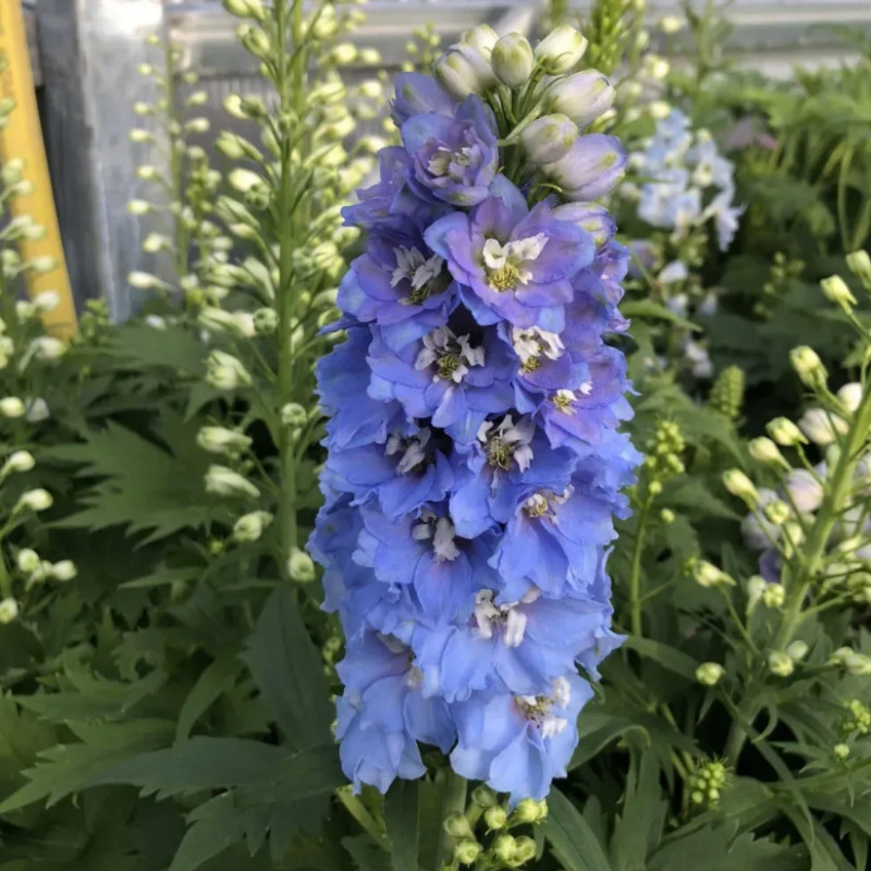 Дельфиниум Дельфина голубой с белым глазком (Delphinium elatum Delphina) – компактная низкорослая серия.