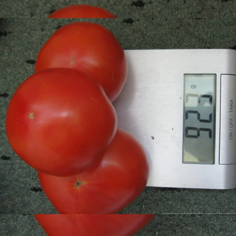 Томат рано вступает в плодоношение - на 60-65-й день после высадки рассады. Красивые плоды красного цвета, по форме округло-плоские, крупные - 200-250 грамм.