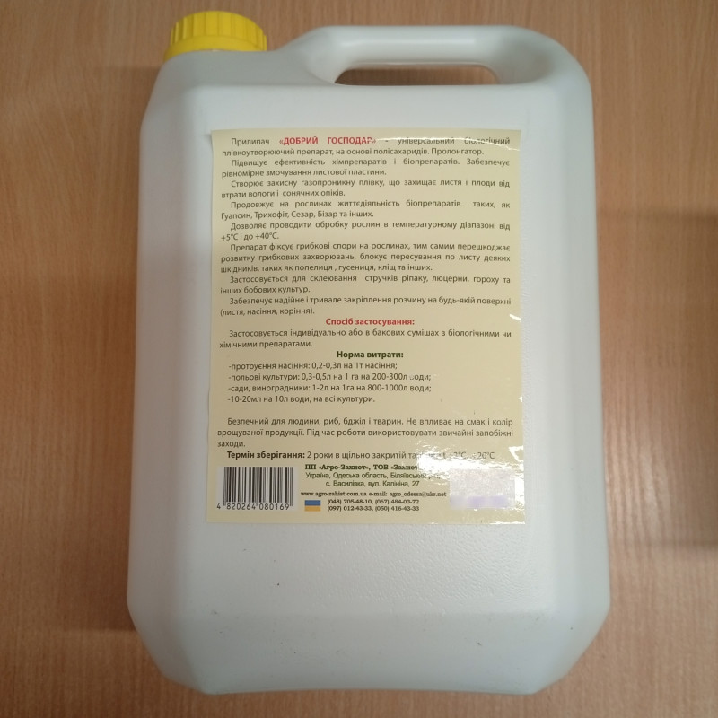 Прилипатель Добрый Хозяин – препарат биологического происхождения, который образовывает пленку, образующую специальный микроклимат в листьях и плодах. Она защищает их ожогов солнца и высыхания. В этом случае при фотосинтезе газы не уменьшают скорость при поглощении растением.