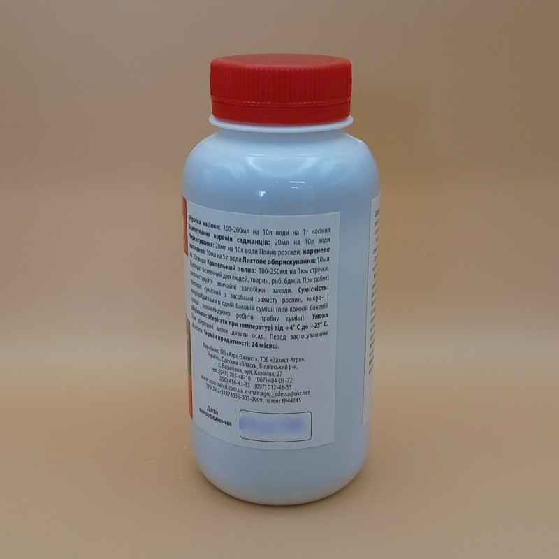 Состав: фульвокислоты, янтарно-органический комплекс, фитогормоны, экстракт высокопротеиновых морских водорослей, содержащих ряд микроэлементов, хелатированных маннитолом, аминокислоты, полисахариды, гриб Trichoderma lignorum.