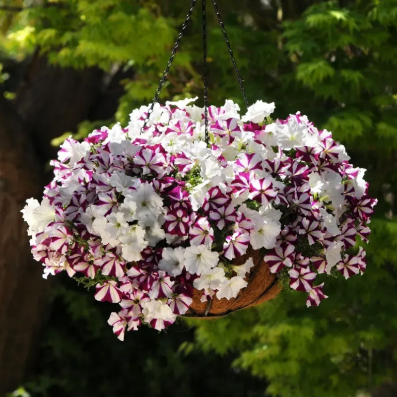 Серия сочетает в себе преимущества полуампельных (рассада занимает немного места) и ампельных гибридов (хорошо заполняет объем кашпо).
