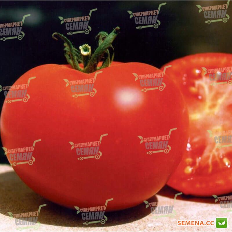 Томаты аккуратные, округло-приплюснутые, созревают дружно, не имеют зеленого пятна у плодоножки. Насыщенный красный цвет снаружи и внутри, помидор мясистый, сочный, многокамерный в разрезе.