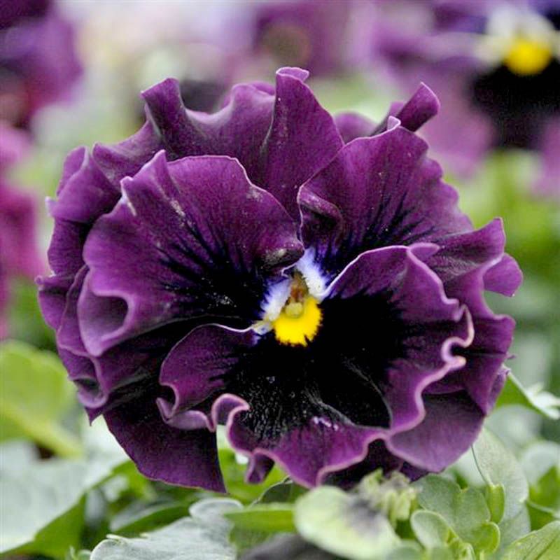 Виола Фризли Сизли F1 (мини) пурпурная с прожилками (Viola Frizzle Sizzle F1 Mini Purple) – улучшенный гибрид виолы сорта Рококо, обладающий невиданной гофрированностью.