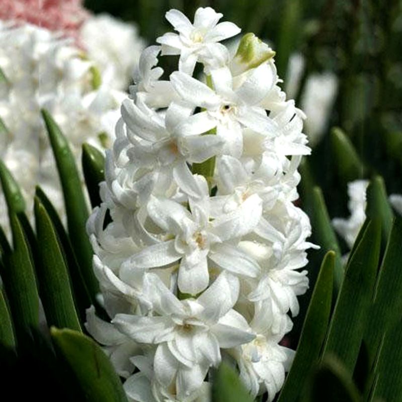 Для гиацинта характерно наличие одного крупного соцветия, на котором располагаются мелкие (до 5 мм в диаметре) белые цветки.
