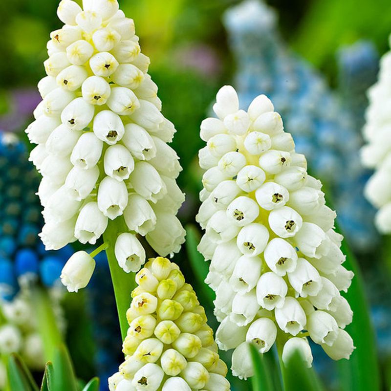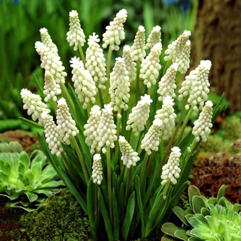 Мускари Аучери Вайт Межик (Aucheri White Magic) – волшебный весенний цветок, который придаст легкости вашей клумбе, а сочные зеленые листья сделают это растение декоративным даже после цветения.