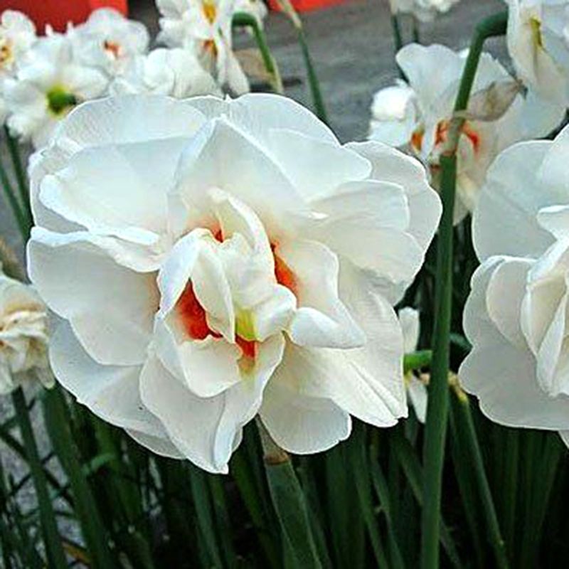 Нарцисс Акрополис (Acropolis) – необычайно пышный нарцисс, который красиво смотрится на клумбе в окружении пестрых цветов. Если срезать цветы и собрать небольшой букет, то они смогут простоять в вазе до недели, причем, не потеряют свою форму и не потускнеют.