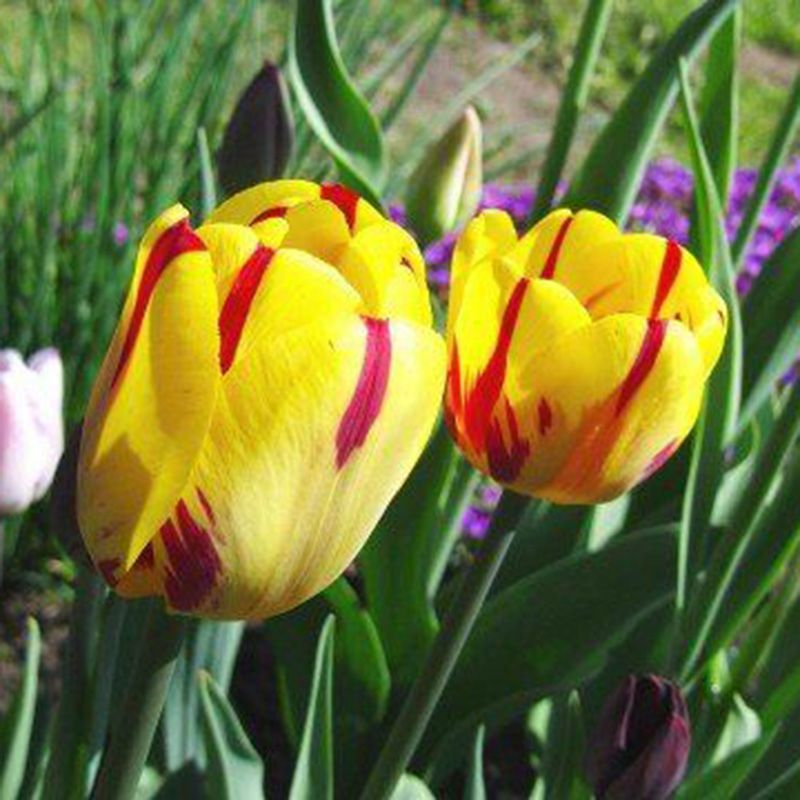 Окраска цветов у тюльпанов Триумф самая разнообразная: от чисто-белой до темно-фиолетовой.