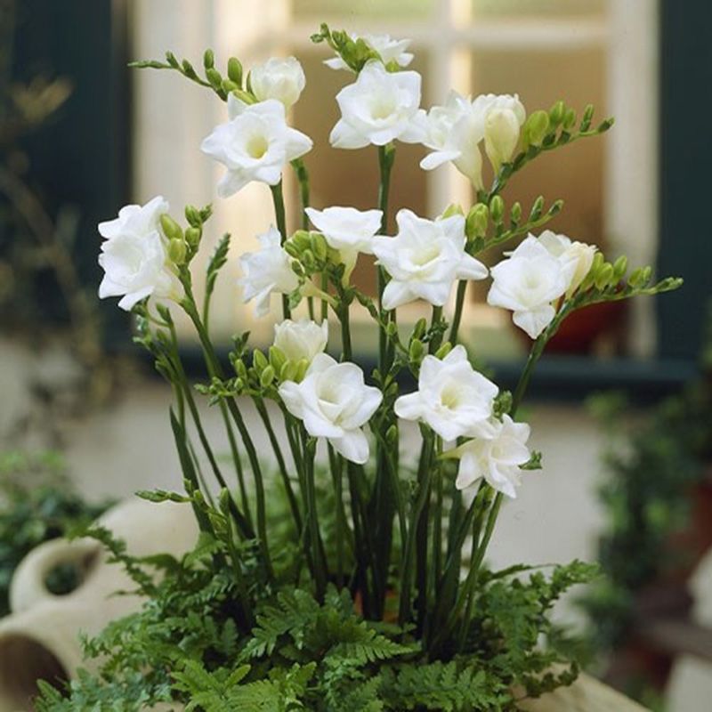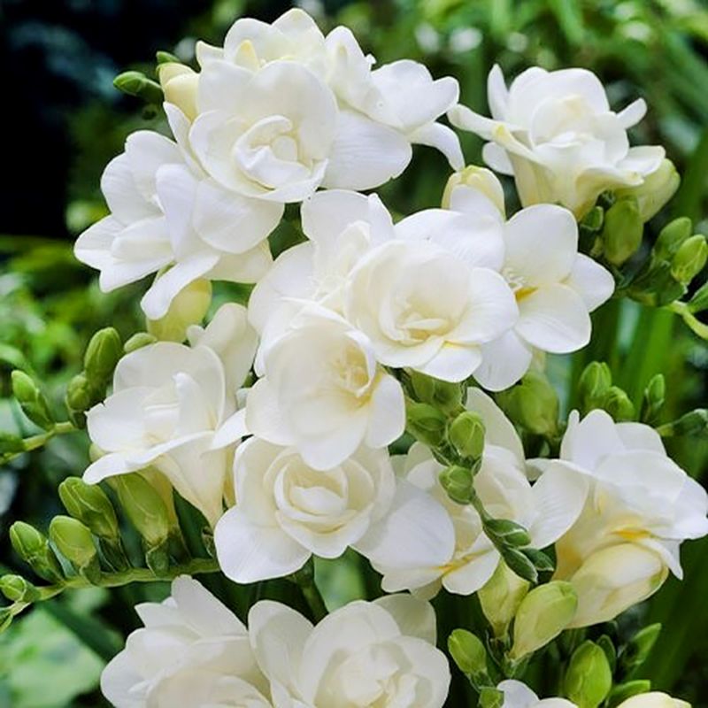 Фрезия белая (White) – растение из ряда многолетних, характерной чертой которого являются небольшие цветки диаметром 3-5 см с пышными лепестками нежно-кремового оттенка.