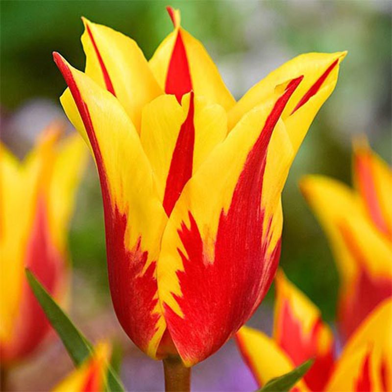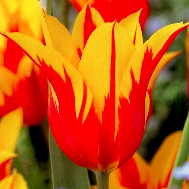 Тюльпан Фаерворк (Firework) – лилиецветный тюльпан (Tulipa lilyflowering) – легко узнаваем, так как своей формой напоминает цветок лилии – изящные бокалы с отгибающимися наружу и заостренными на концах лепестками.