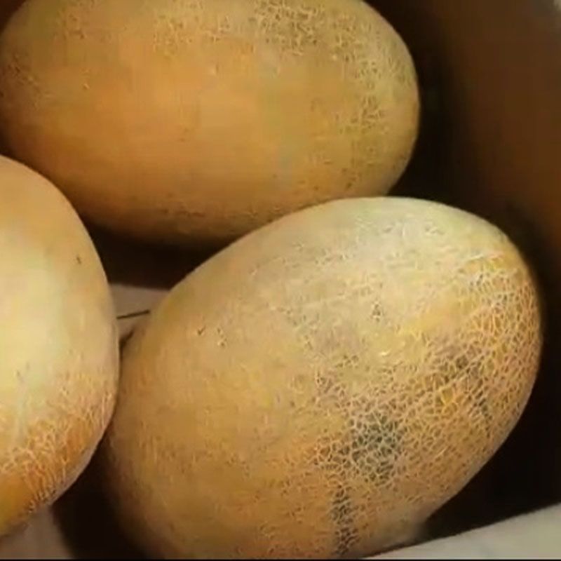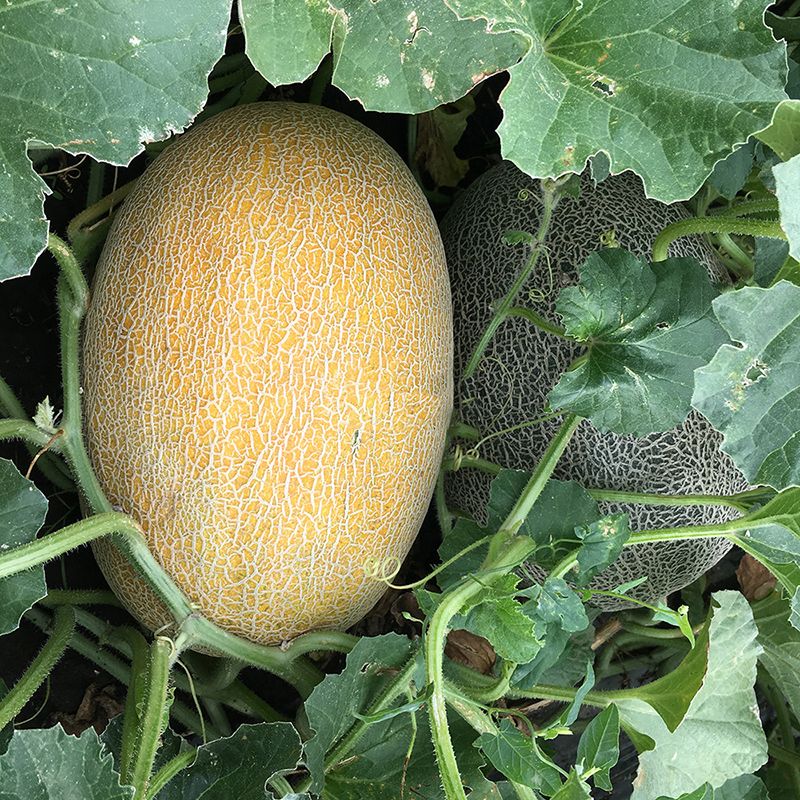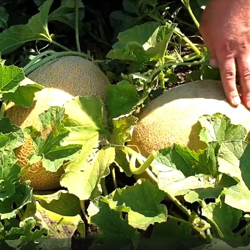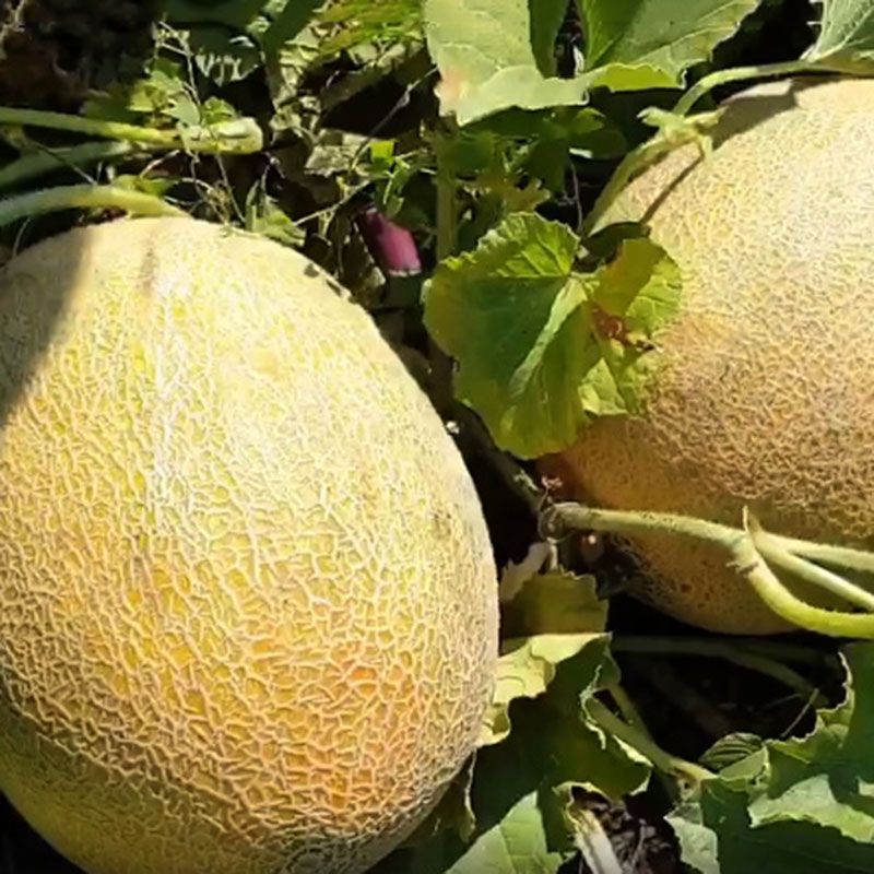 Характеристика плодов – Плоды овальной формы, оранжевого цвета, весом 4-4,5 кг. Крупные по размеру: длина плода – 25 см, диаметр – 20 см. Красивая типичная четко выраженная сетка. Надежное крепление плодоножки к плоду. Типичная светлая мякоть, средняя семенная камера. Нежный, очень сладкий вкус, сахаристость на уровне 15-17%.