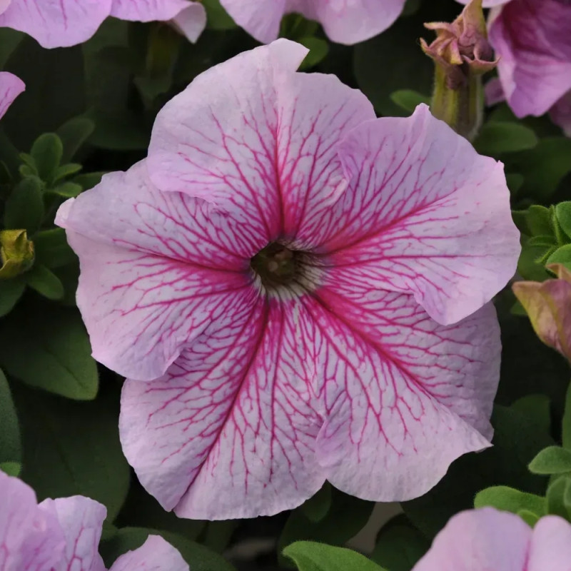 Петуния грандифлора Дедди F1 пепперминт (Petunia grandiflora Daddy F1 Peppermint) – великолепная серия крупноцветковой петунии с прожилками от американской компании PanAmerican Seed.