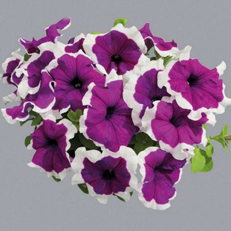 Петуния грандифлора Лимбо F1 фиолетовое пикоте (Petunia grandiflora Limbo F1 violet picotee) – крупноцветковый карликовый гибрид, который не требует использования химических регуляторов роста.