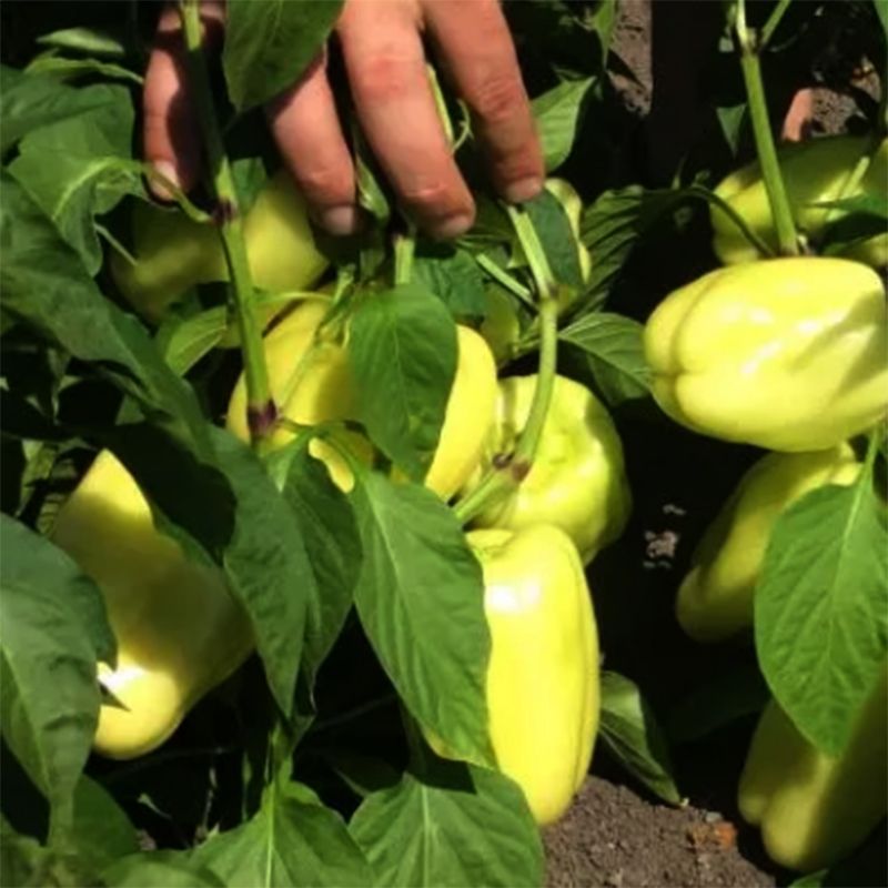 Характеристика плодов – Блочный белый перец с очень однородными плодами и толстой мякотью. Цвет в технической спелости – белый, в биологической – красный. Вес – 180-200 г. Размер – 10х12 см, толщина стенки – 7-9 мм.