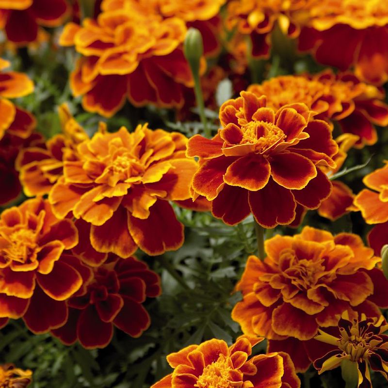 Бархатцы Сафари скарлет французские раскидистые (Safari Scarlet) – яркая, компактная серия с большими махровыми цветами оригинального окраса.