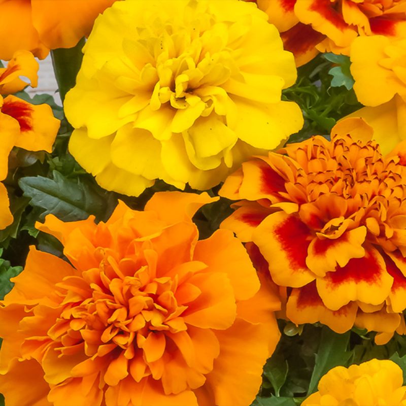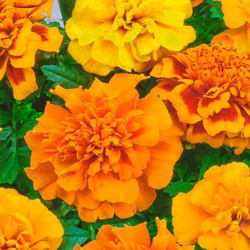 Бархатцы Чика смесь французские раскидистые (Tagetes patula Chica) – раннецветущая серия с крупными махровыми цветами.