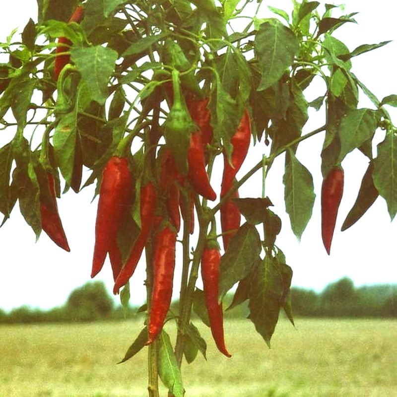 Характеристика плодов – Плоды ярко-красного цвета, длина – 10-12 см. Вес – 21 г. Содержание капсаицина – 600-800 мг/кг (9500-12800 по шкале Сковилля) – (параметр остроты). Плоды висят на растении.