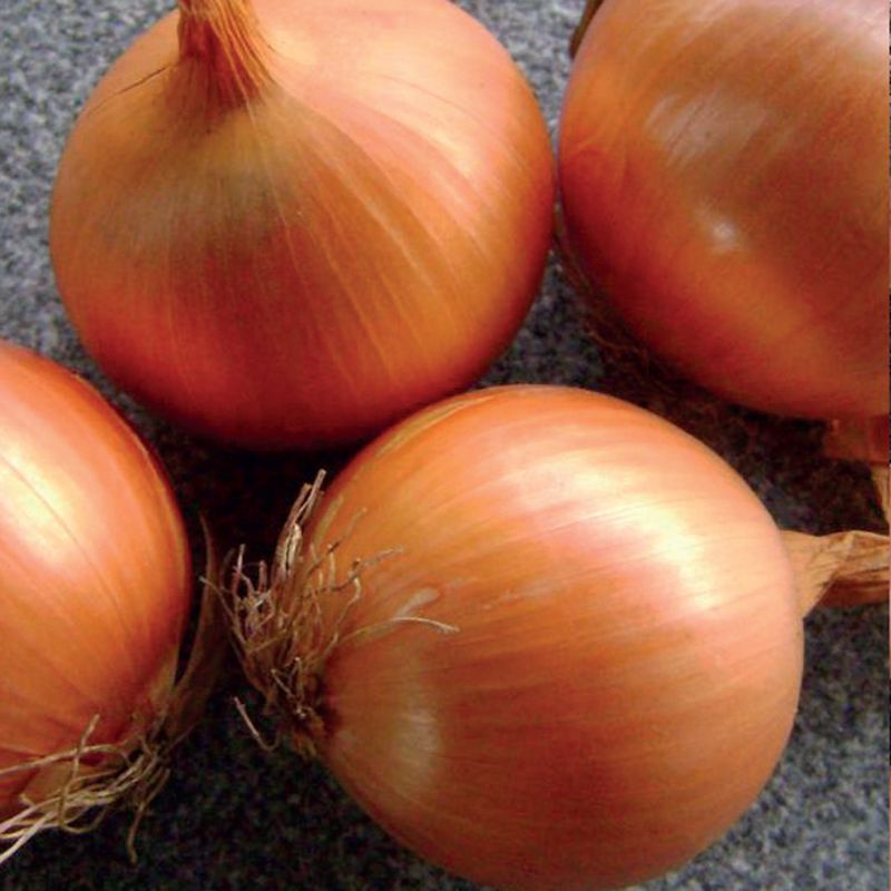 Характеристика плодов – Луковицы округлой формы, от среднего до крупного размера. Красивый, насыщенно бронзовый окрас луковицы с 3-4 очень плотно прилегающими покровными чешуями.