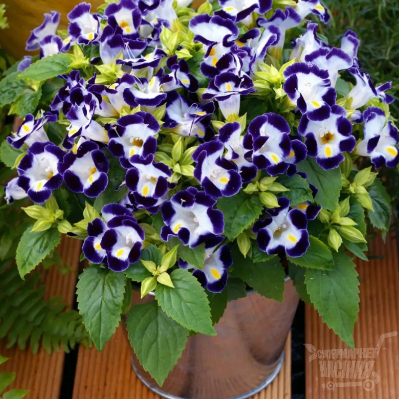 Торения Литтл Кисс F1 сине-белая (Little Kiss F1 blue & white) – компактное однолетнее растение с очень красочными цветами. Отличается пышной листвой и цветением на протяжении длительного периода времени.