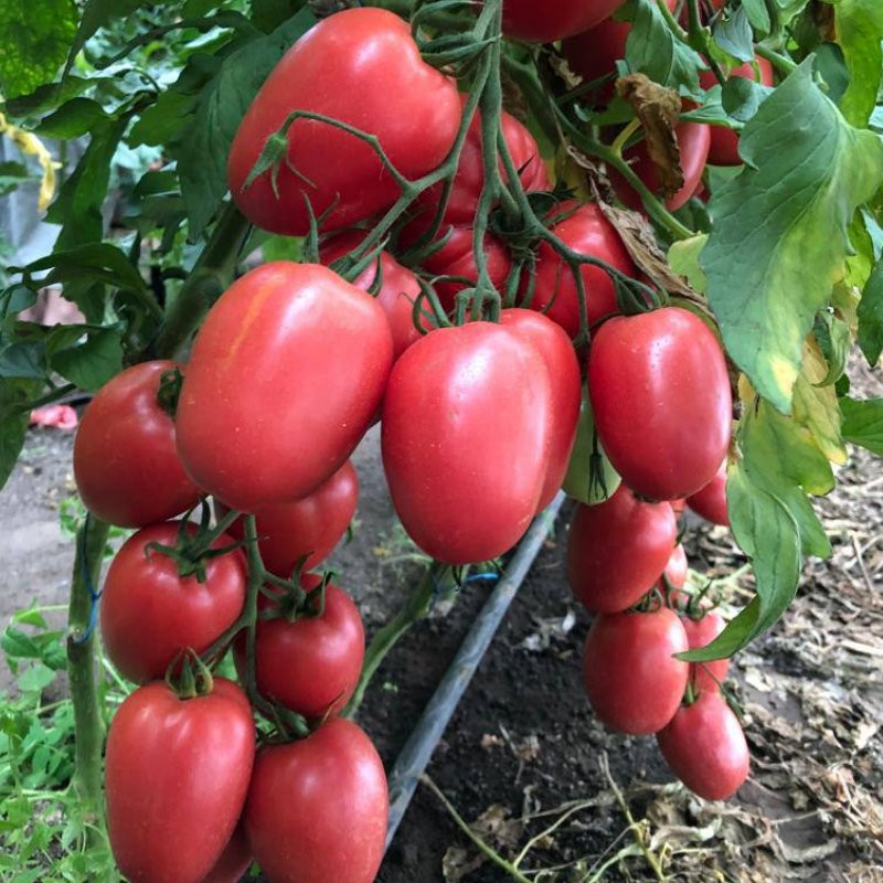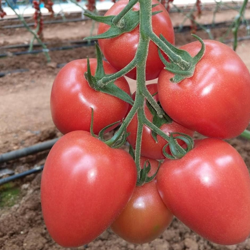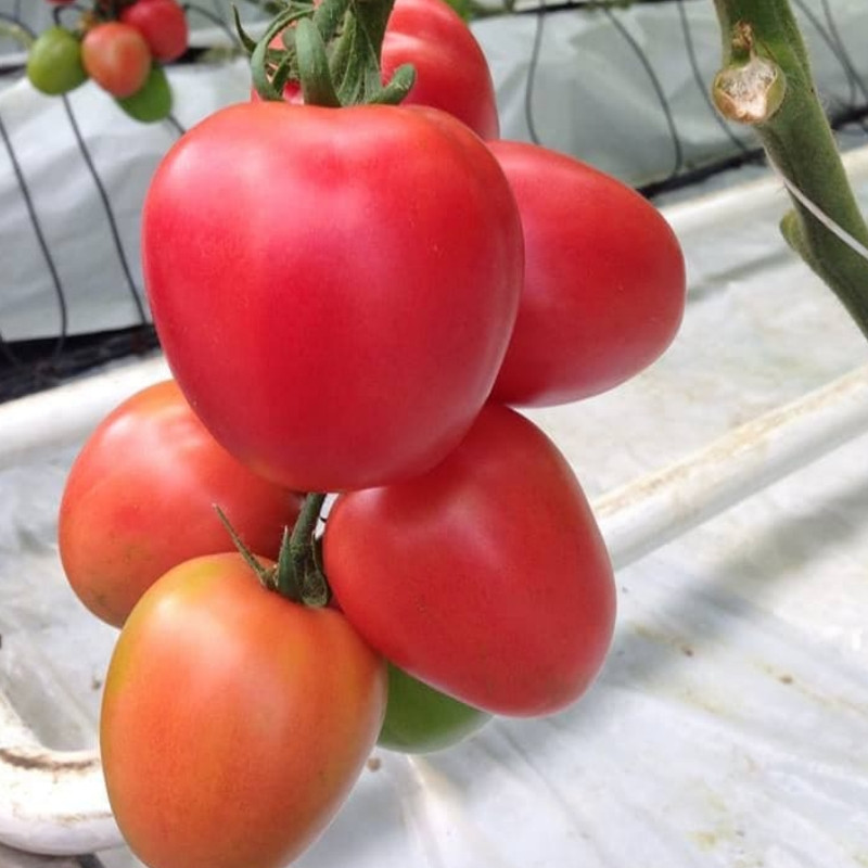 Характеристика плодов – Формирует хорошие плоды овальной формы, весом 160-180 г. На каждой кисти 5-7 крупных плодов. Привлекательный малиновый цвет с блеском. Сладкий и вкусный гибрид.