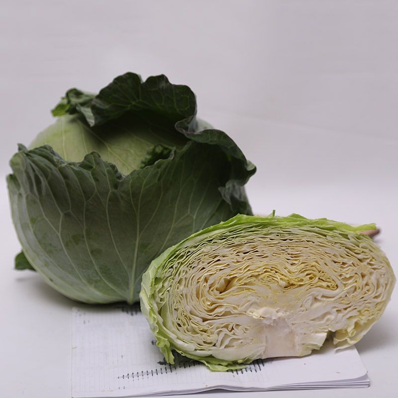 Характеристика плодов – Розеточные и покровные листья сине-зеленого цвета с сильным восковым напылением. Розетка среднего размера – 55-65 см. Средний вес головки – 2,5-3,5 кг. В разрезе – белая.