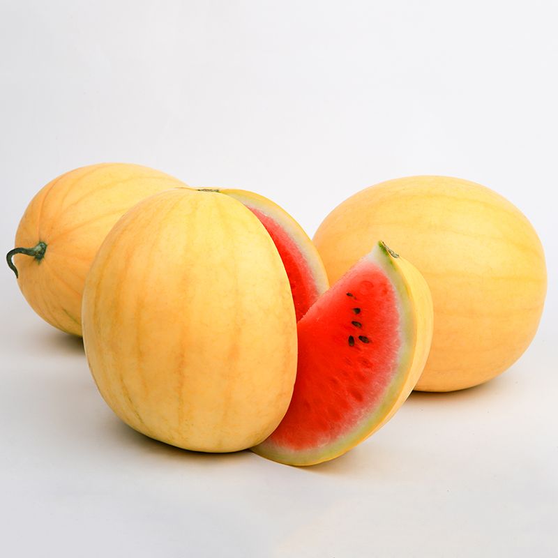 Характеристика плодов – Растение образует 2-4 ягоды с оригинальной кожурой желтого цвета, средней весом 4-5 кг. Мякоть красного цвета с небольшими семенами. Вкусовые качества хорошие. Содержание сахаров до 12%. Оригинальный ярко-желтый цвет кожуры делает продукт привлекательным для покупателей.