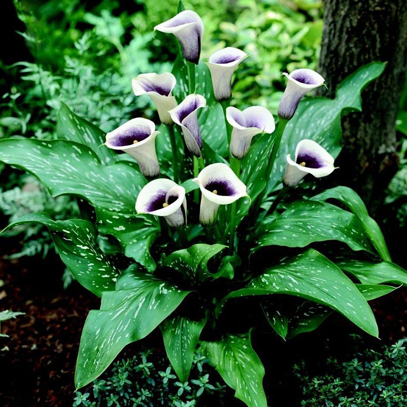 Калла Пикассо предпочитает солнечные участки и полутени, хорошо растет на хорошо увлажненных, плодородных почвах.