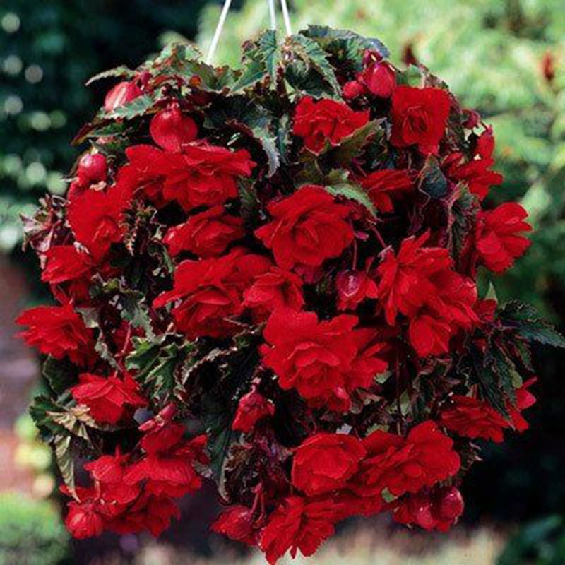 Бегония каскадная Ред (Red) красная – растение высотой около 25-30 см. Хорошо выглядит в подвесных горшках, кашпо и балконах.