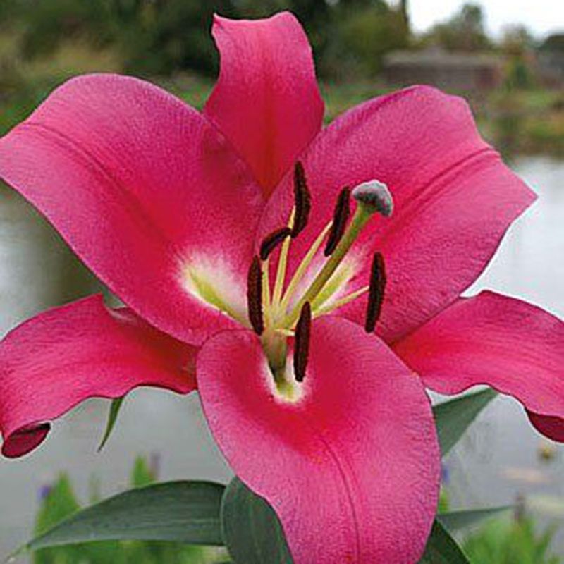 Лилия Робина (Robina) 18/20 ОТ – лилия, которая расцветает в середине июля, образуя замечательные огромные цветы яркого малиново-розового оттенка с бело-зеленой звездочкой.