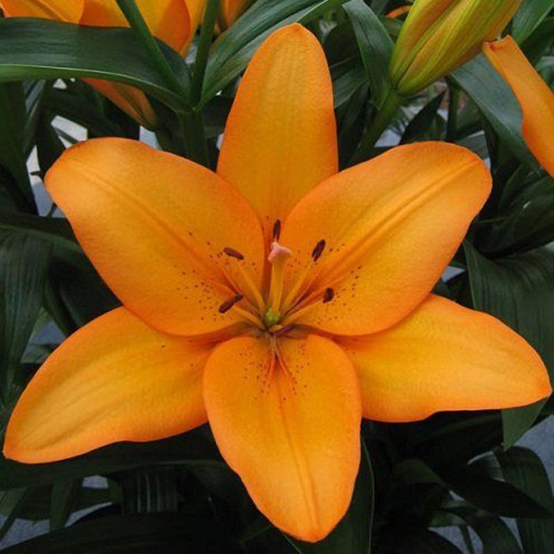 Лилия Тебельди (Tebaldi) 20/22 азиатская – лилия, которая имеет яркий оранжевый цвет, крупный размер и насыщенный сладкий аромат. Ее рост составляет около 90-100 см.