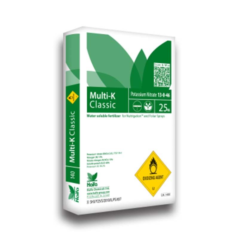 Удобрение Мульти-К (Multi-K) 13-0-46 (нитрат калия) водорастворимое – удобрение на основе нитрата калия. Оно является источником калия и азота, двух макроэлементов (первичных питательных веществ), необходимых для питания и роста растений. Поскольку для здорового роста требуется большое количество азота и калия, эти элементы должны быть внесены в почву для достижения здорового роста.