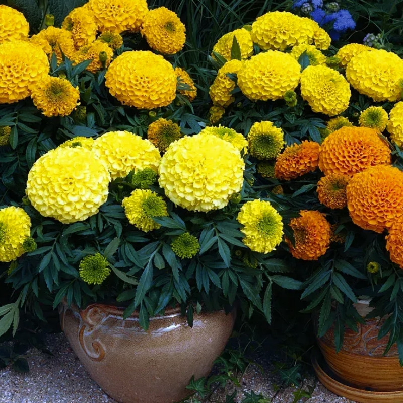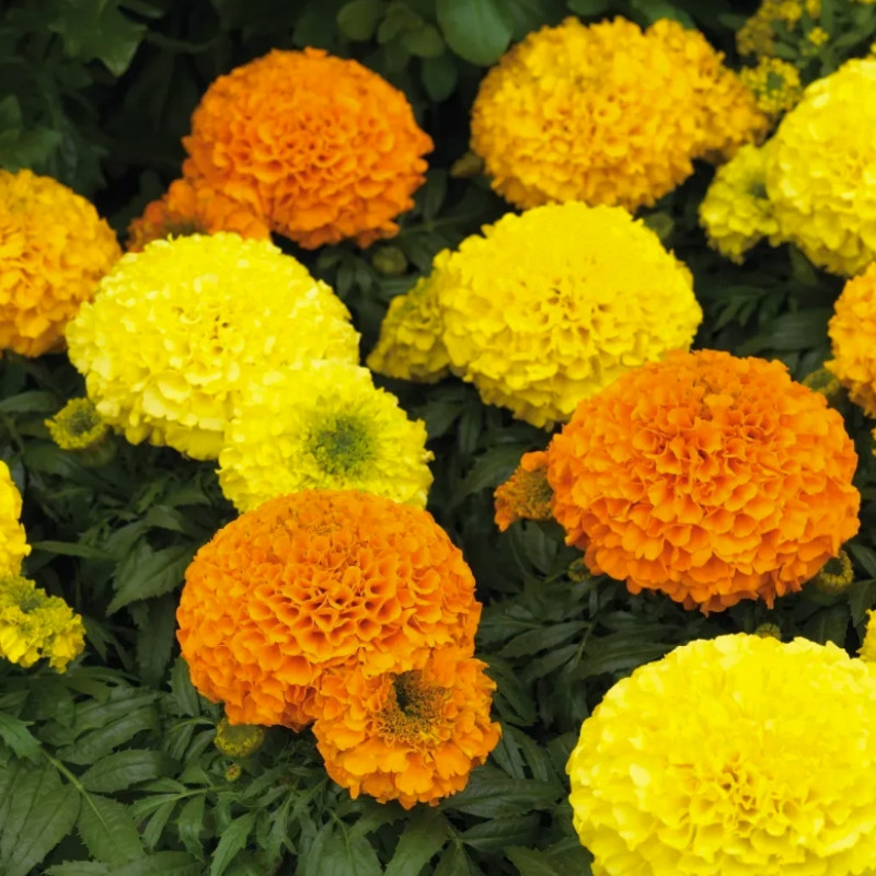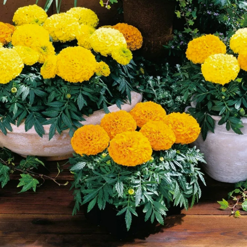 Бархатцы Антигуа F1 смесь (Tagetes erecta Antigua F1 mix) – генетически компактный гибрид.