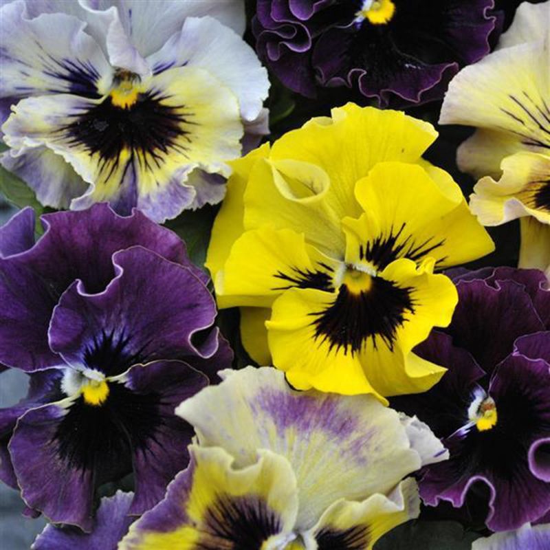 Виола Фризли Сизли F1 (мини) смесь (Viola Frizzle Sizzle F1 Mini mix) – улучшенный гибрид виолы сорта Рококо, обладающий невиданной гофрированностью.