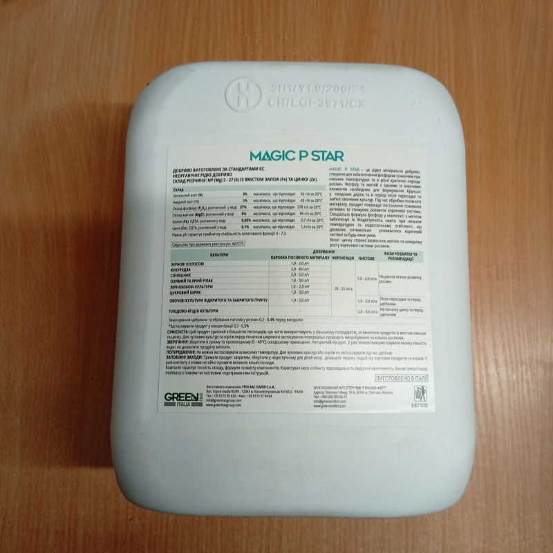 Удобрение Мэджик П Стар (Megic P Star) – это жидкое минеральное удобрение, созданное для обеспечения растений доступным фосфором и магнием в критический период развития растений. При обнаружении признаков фосфорного голодания в виде антоциановой окраски листьев колосовых, рапса, кукурузы.