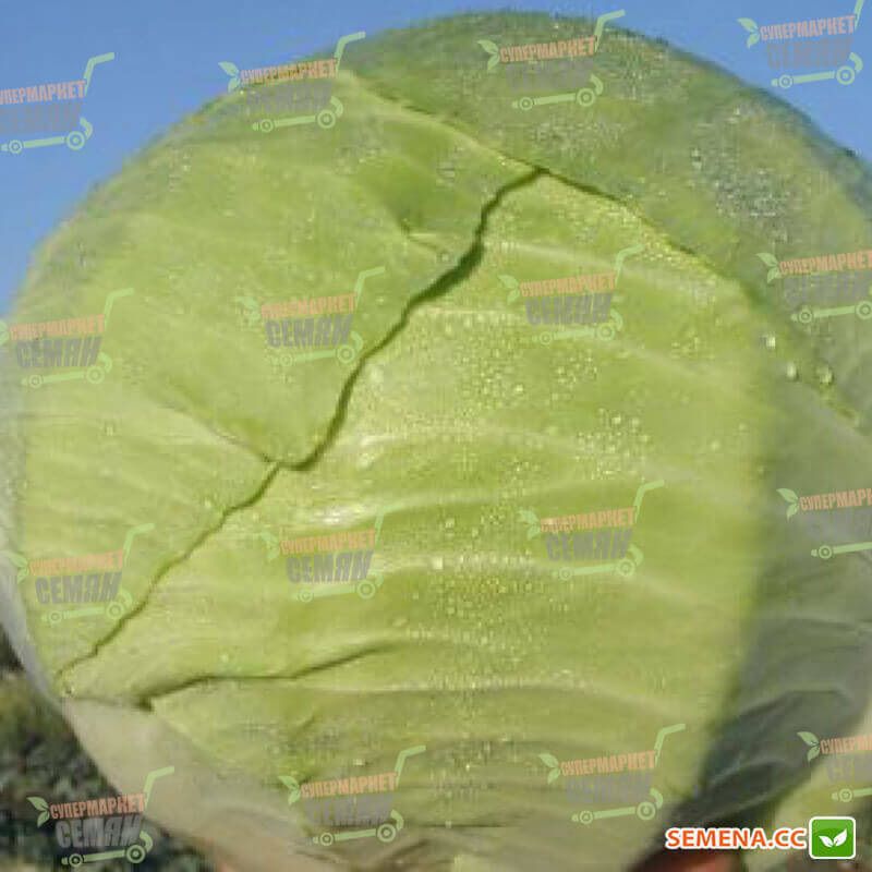 Его выращивают либо в открытом, либо в закрытом грунтах. По фотографии, предоставленной выше, Вы можете увидеть, что плоды однородные, сверхплотные, компактные, светло-зеленого цвета, округлой формы, в среднем весят около 5 килограмм. Листья тонкие, покрыты восковым налетом. В разрезе сама головка белоснежного цвета. Корневая система у этого гибрида хорошо развита.