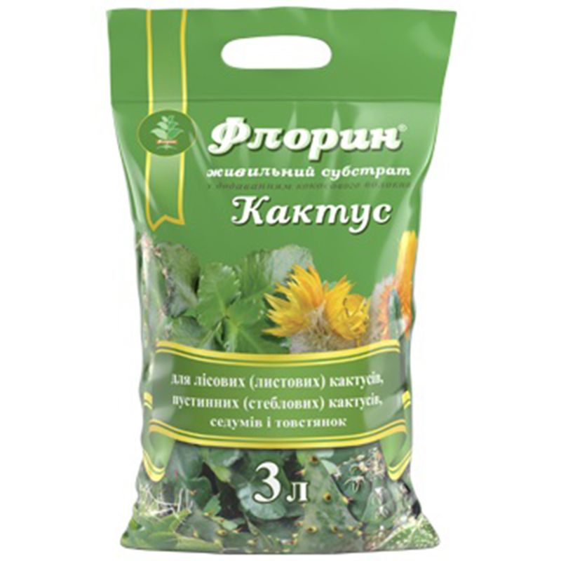 Субстрат Флорин для кактусов – субстрат, предназначенный для выращивания лесных (листовых) кактусов, пустынных (стеблевых) кактусов, седум, толстянок, для высева семян, укоренения отростков.
