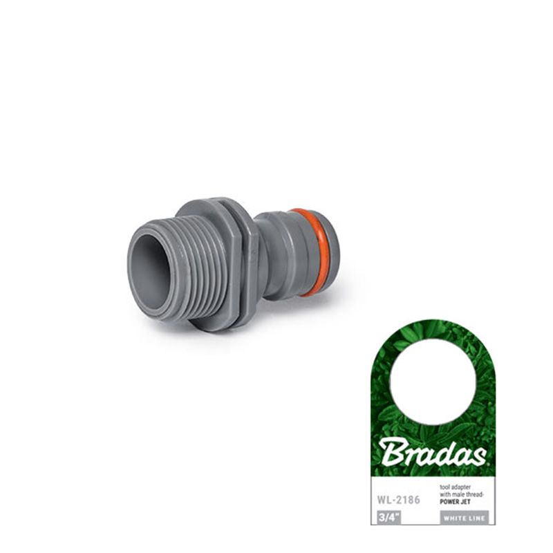 Адаптер WHITE LINE с наружной резьбой 3/4" POWER JET – адаптер с наружной резьбой, предназначенный для замены аналогичного адаптера в поливочных пистолетах и оросителях, который может ломаться в ходе неправильной эксплуатации или для замены его на полнопроходный адаптер Power Jet.