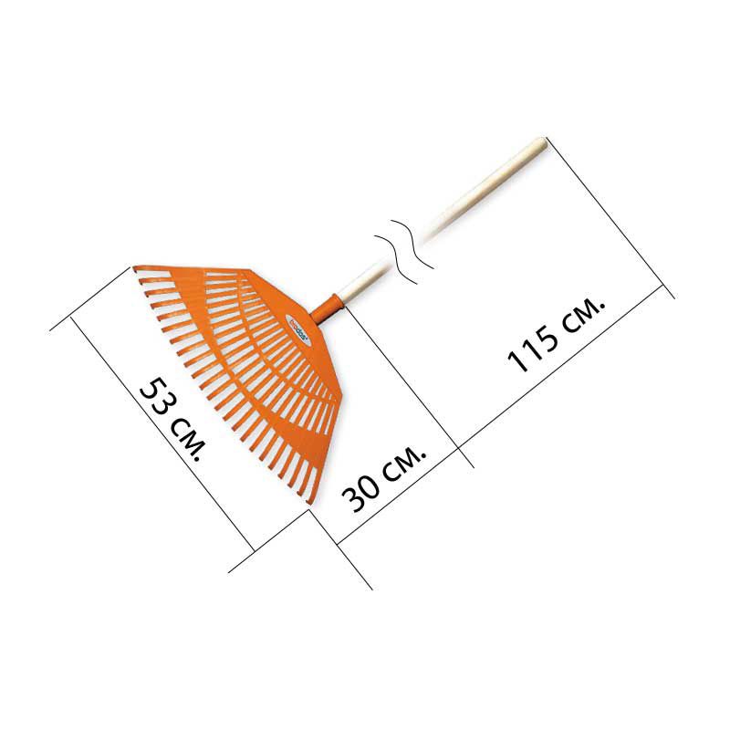 Грабли веерные - 23 зубца черенок деревянный – упругие и эластичные веерные грабли, которые изготовлены из высококачественного пластика.