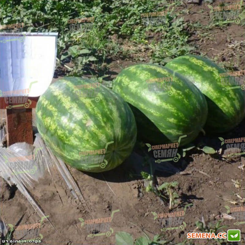 Характеристика плодов – Плоды средним весом 9-10 килограммов. Семена мелкие. Мякоть хрустящая, темно-красного цвета с большим содержанием сахара. Прочная корка, обеспечивающая хорошую транспортабельность.