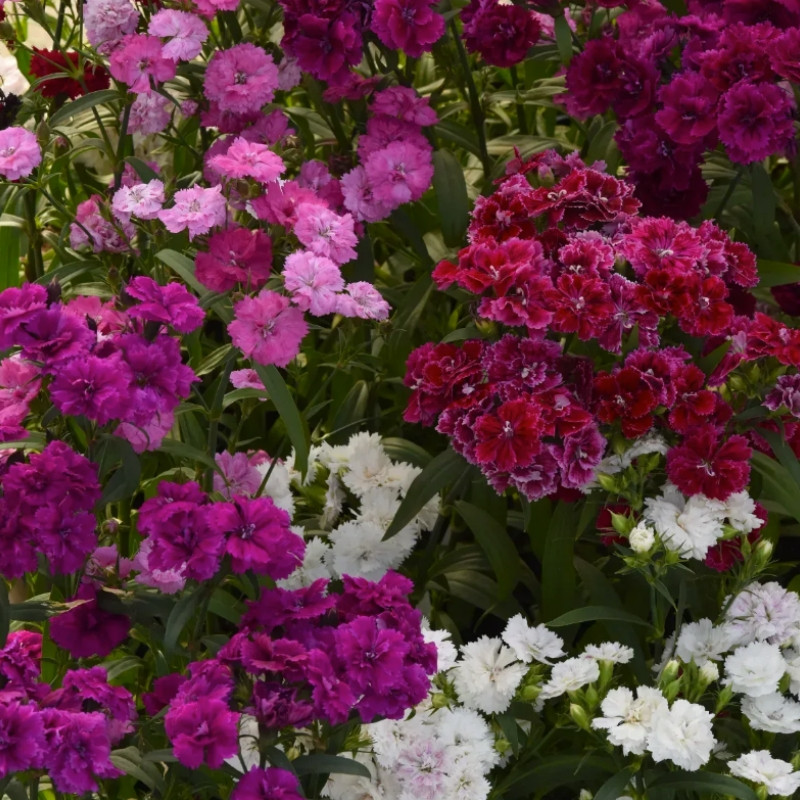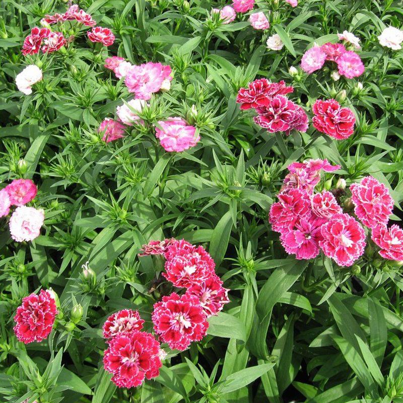 Гвоздика турецкая махровая Династия F1 смесь (Dianthus barbatus interspecific Dynasty F1 mix) – изысканное карликовое растение, высотой 25-30 см, шириной 40-50 см, с большим количеством махровых цветов различных расцветок.