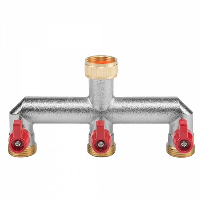 Распределитель с тремя кранами 3/4" – распределитель, который имеет три шаровых крана с выходом 3/4" (резьба наружная) и один вход 3/4" с внутренней резьбой.