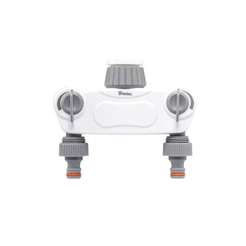 Распределитель с 2 кранами WHITE LINE - SOLID – распределитель, который применяется для подключения к источнику воды и разветвления потоков при поливе и орошении.