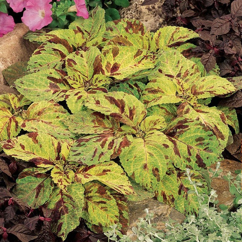 Семена колеуса Визард Мозаик - от семенной компании PanAmerican Seed (США). Растение колеуса Wizard Coral Sunrise компактное, высотой 30-35 см, и шириной 25-30 см.
