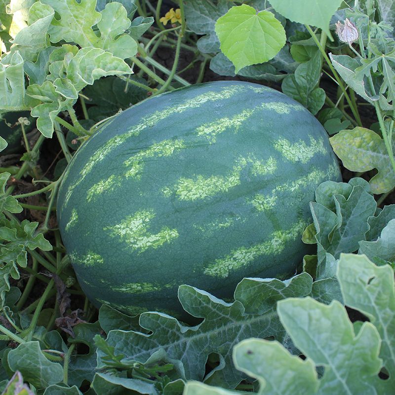 Характеристика плодов – Гибрид формирует плоды овальной формы, весом 12-15 кг, темно-зеленого цвета с тонкими светлыми полосами и характерным восковым налетом. Мякоть плотная, сочная, насыщенного красного цвета. Содержание сахаров 11-12%.