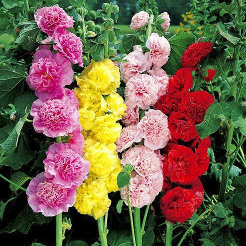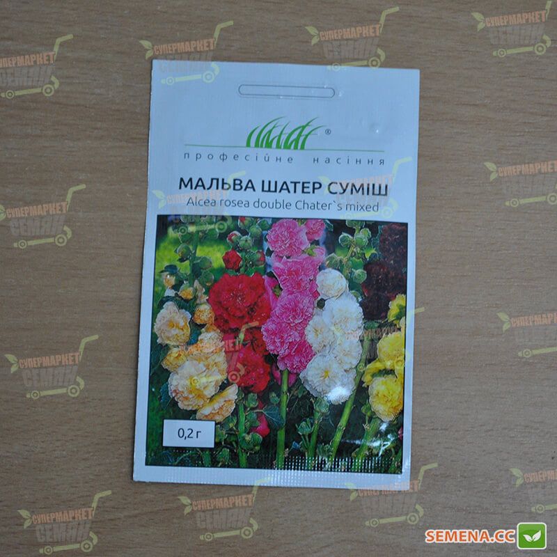 Мальва махровая Шатер смесь (Alcea rosea double Chater's mix) – двухлетнее растение, высотой 1,5-2 м.