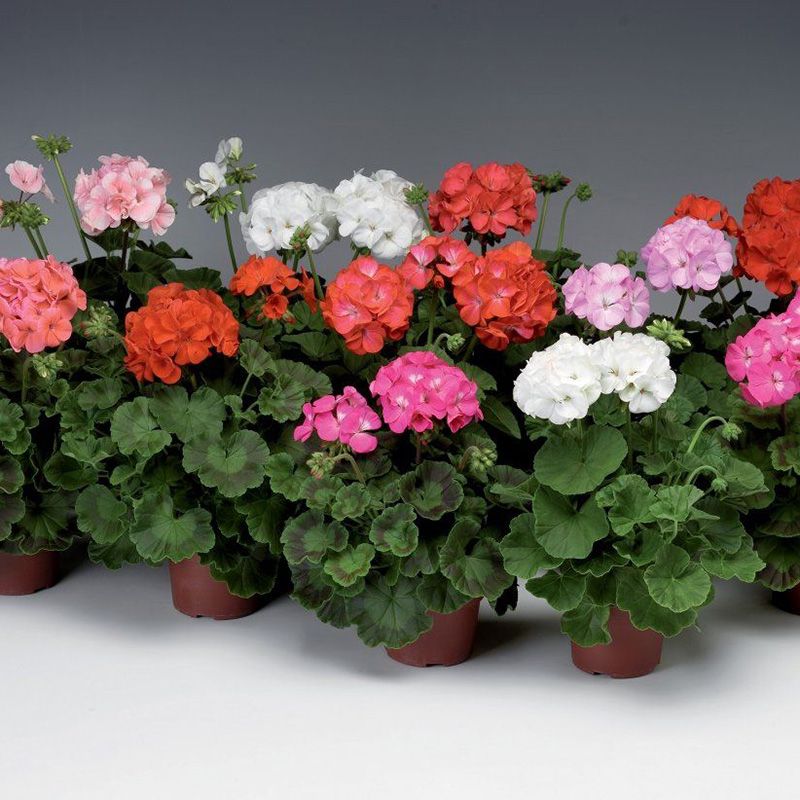 Пеларгония Пинто F1 смесь (Pelargonium hortorum Pinto F1 mix) – многолетнее кустовое растение.