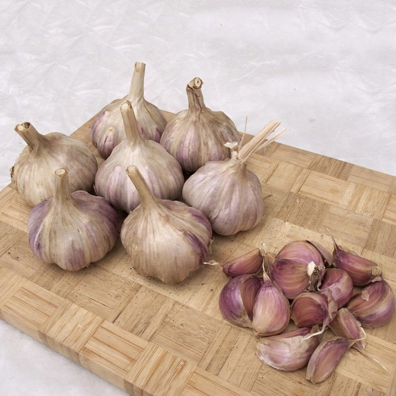 Характеристика плодов – Головка среднего размера, весом 70-75 г. Цвет внешних чешуек белый с фиолетовыми полосками, цвет зубков – фиолетовый. Количество зубков среднего размера в головке составляет 8-11 штук.