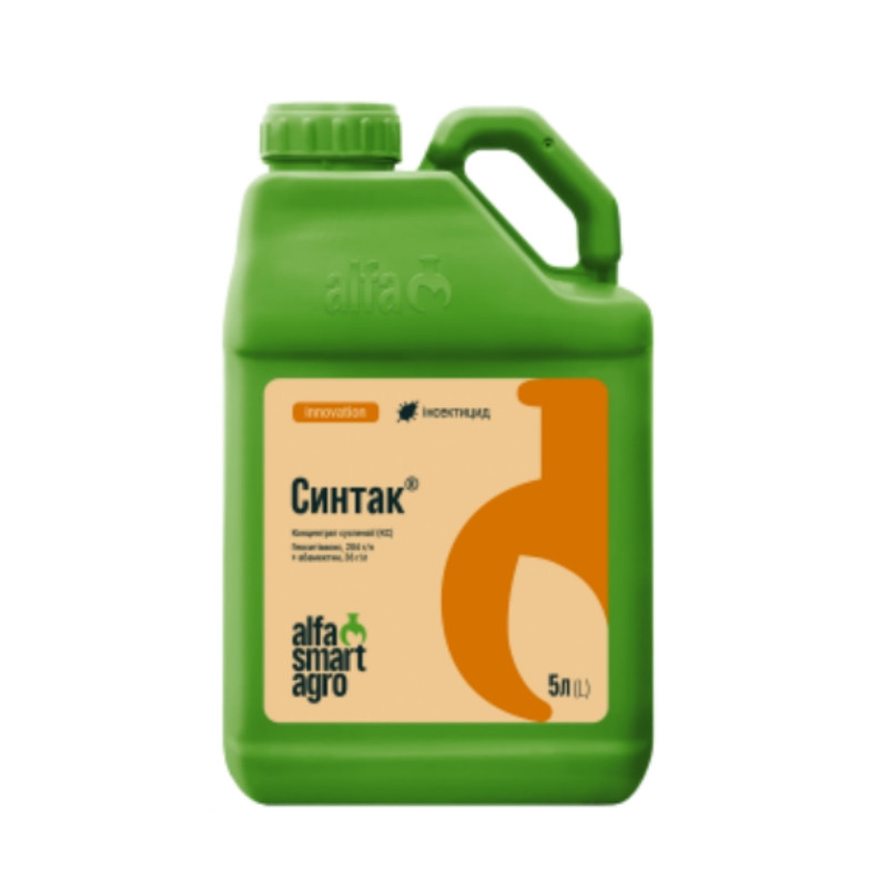 Синтак эффективно действует на все стадии клещей (яйца, личинки, нимфы и имаго). Надежно контролирует следующие виды клещей: обыкновенный паутинный клещ (Tetranychus telarius L.), красный плодовый клещ (Panonychus ulmi Koch.), Туркестанский паутинный клещ (Tetranychus turkestani), красный паутинный клещ (Tetranychus cinnabarinus), атлантический паутинный клещ (Tetranychus atlanticus), боярышниковый клещ (Tetranuchus viennensis), красный цитрусовый клещ (Panonychus citri), виноградный паутинный клещ (Eotetranychus pruni), грабовый паутинный клещ (Eotetranychus carpini Oud.), желтый яблоневый паутинный клещ (Eotetranychus pomi).